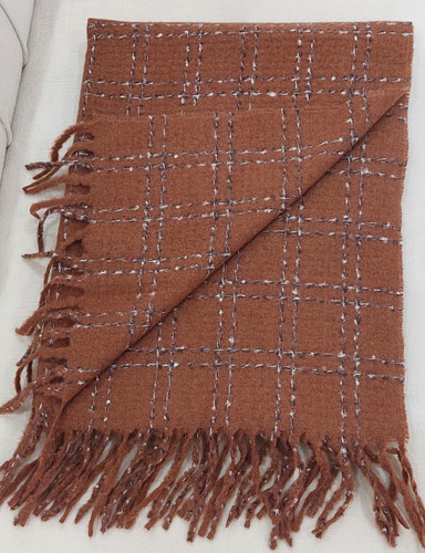 شال دخترانه موهر قهوه ای شکلاتی دورو ریش دار