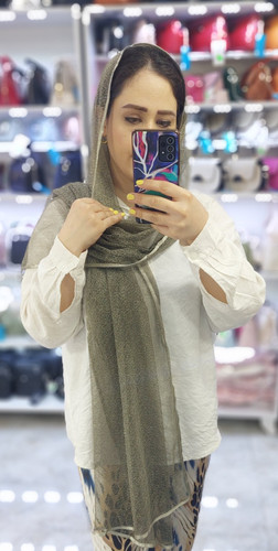 شال دخترانه حریر نخ طرحدار ولمه نقره ای