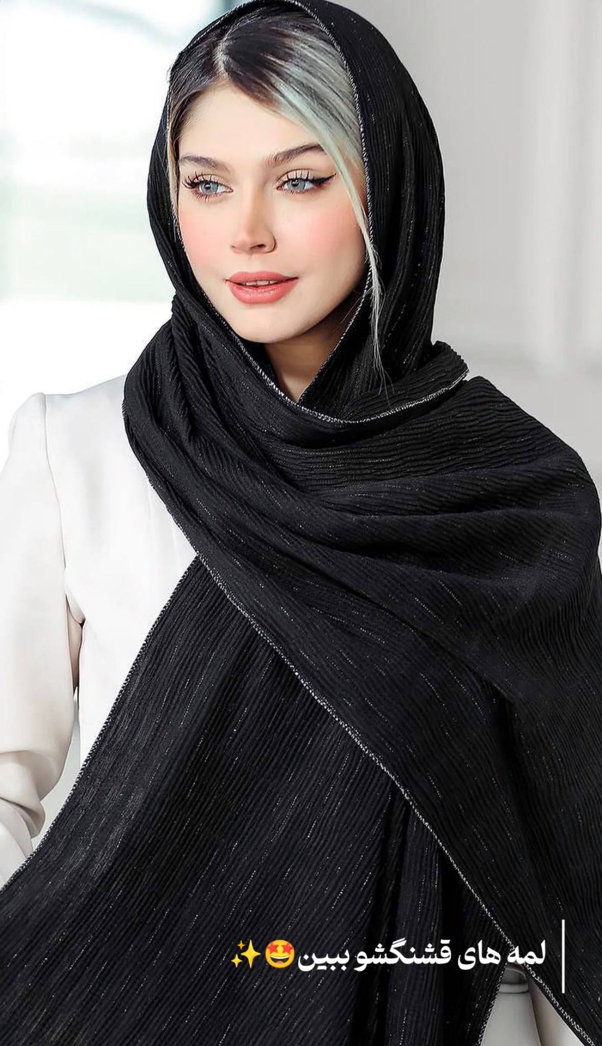 شال مشکی پلیسه دور حاشیه و داخل لمه دار