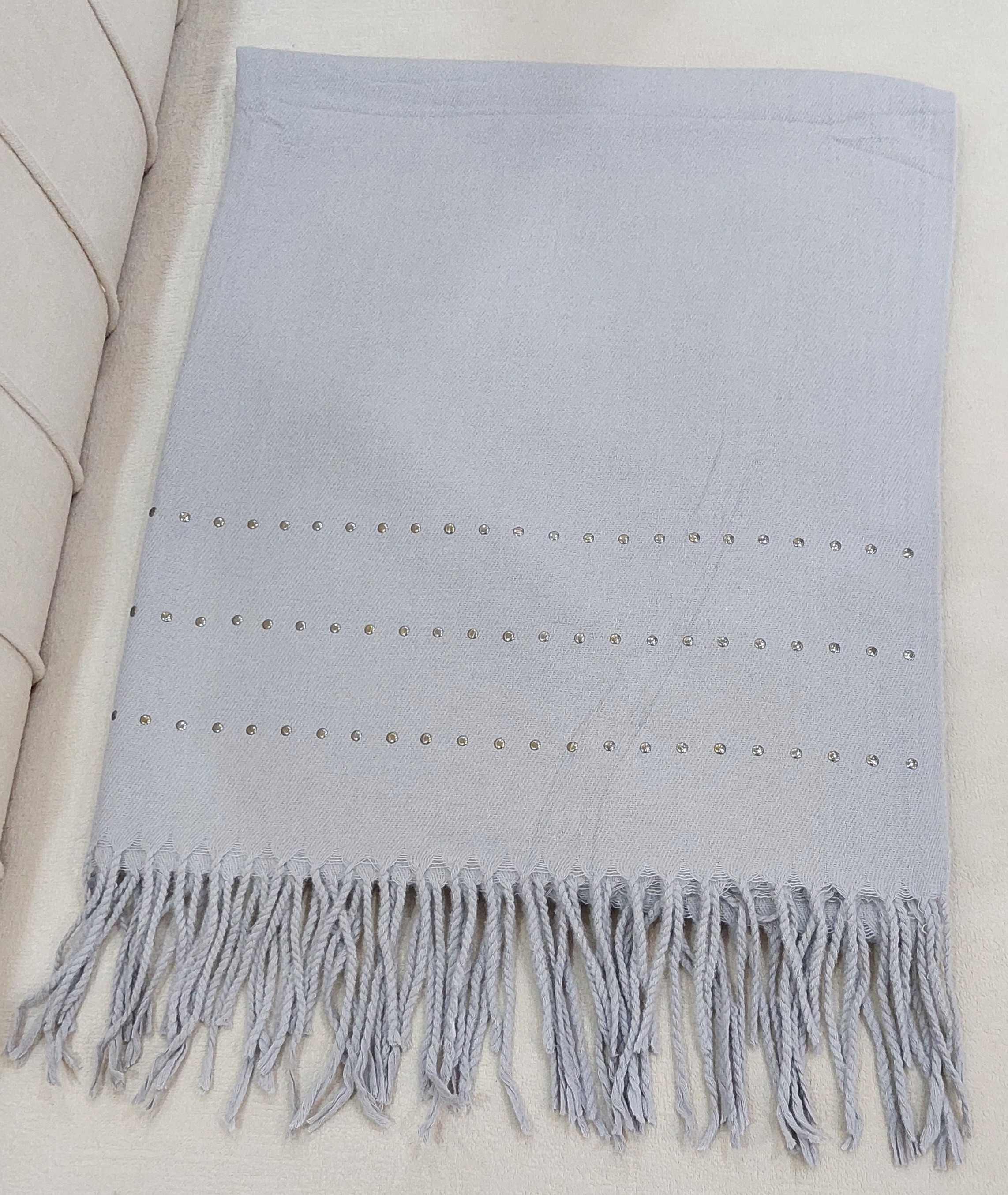 شال برشکا دورلمه نقره ای وارداتی منگوله دار