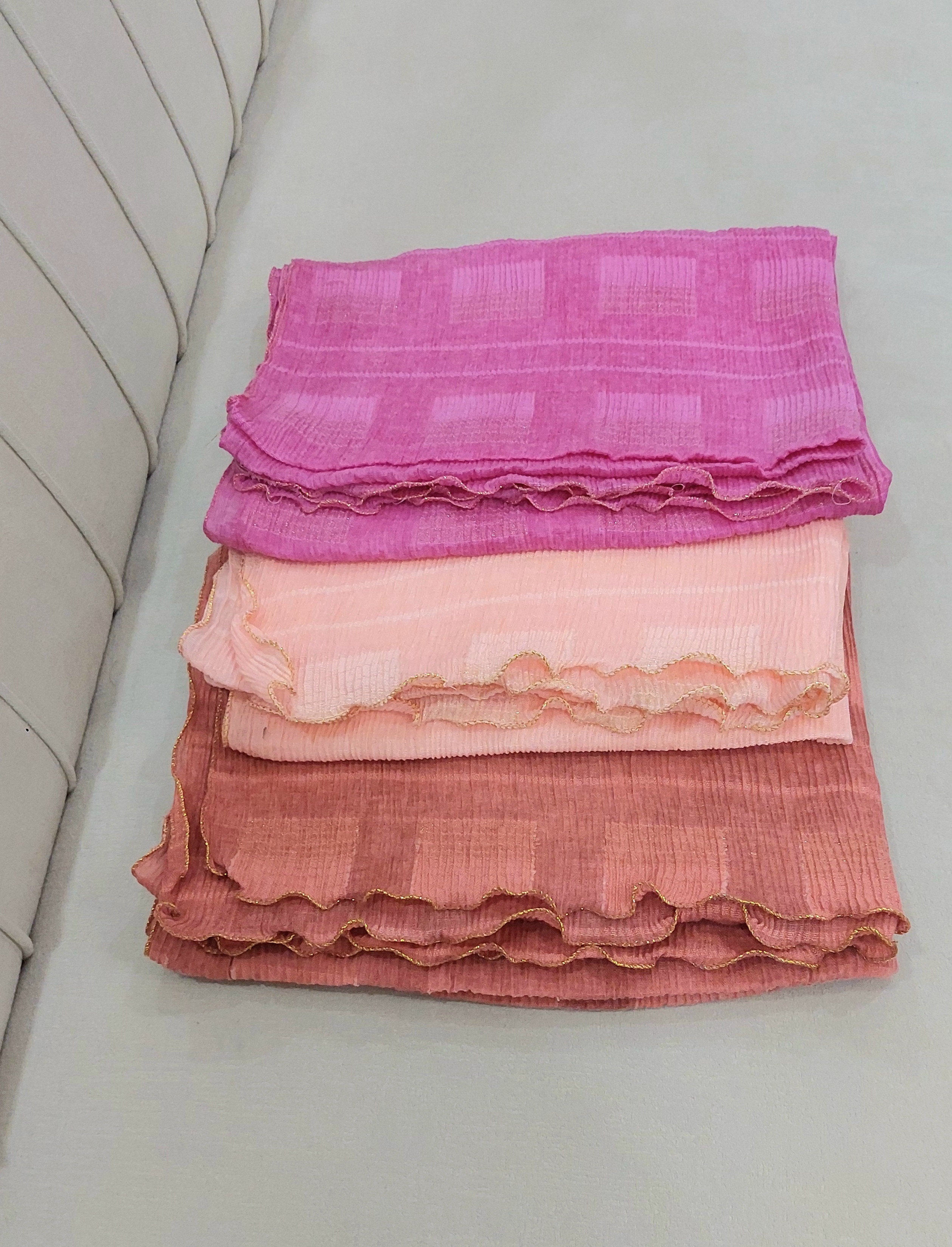 شال وارداتی نخی چروک دورگان حریر دوزی