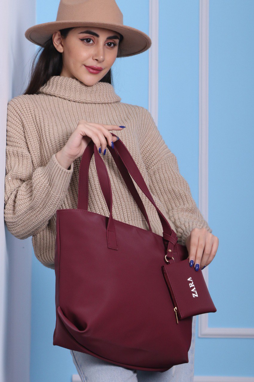 کیف دخترانه بزرگ رنگ زرشکی طرح زارا کیف پول خوردی