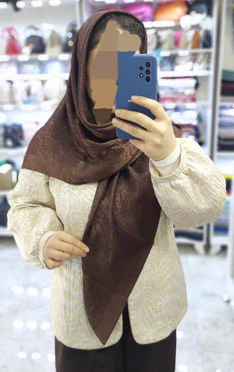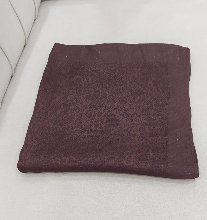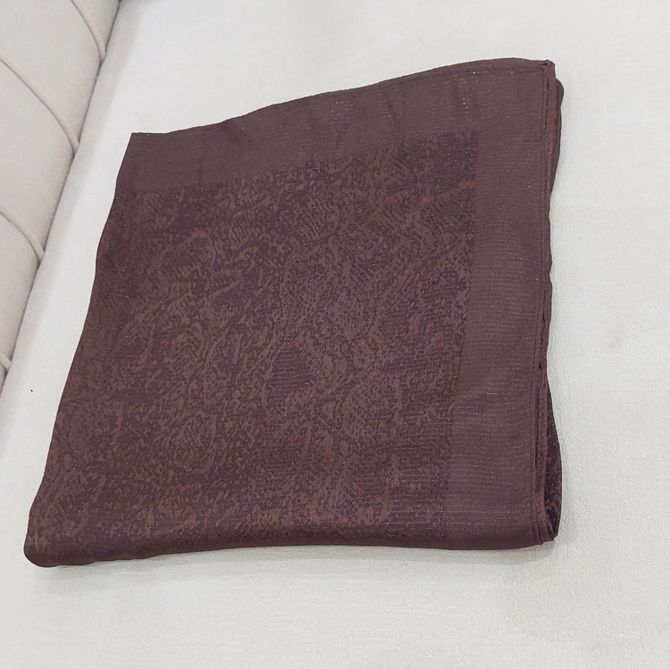 روسری ژاکارد طرح پتینه شاین دار قهوه ای دور دوخت شده