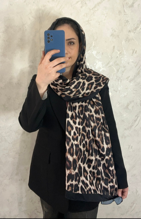 مشخصات شال: رنگ زمینه کرم و با طرح پلنگی مشکی نسکافه ای ودور نوارشال مشکی