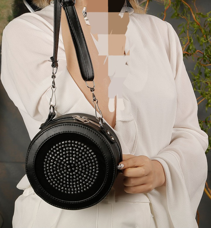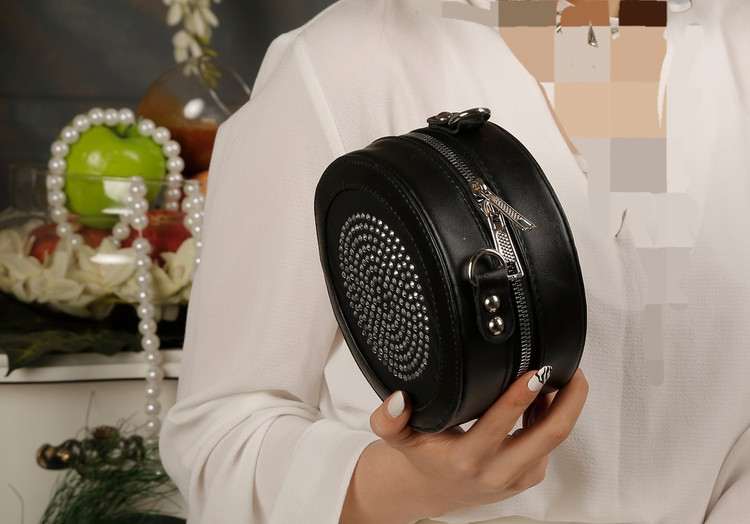 کیف گرد با جنس چرم مصنوعی نگین کاری شده به هیجعنوان ریزش نداره.