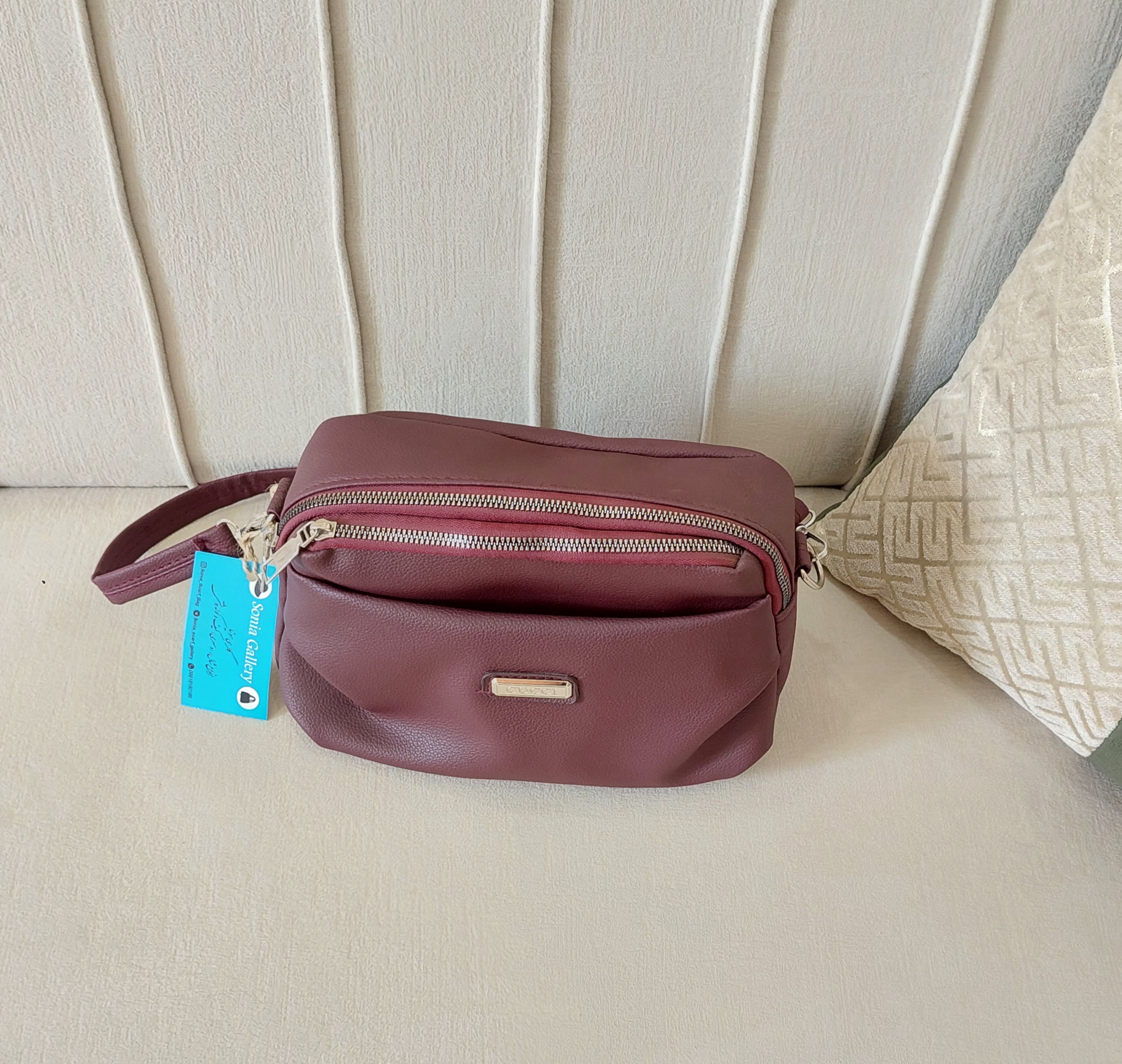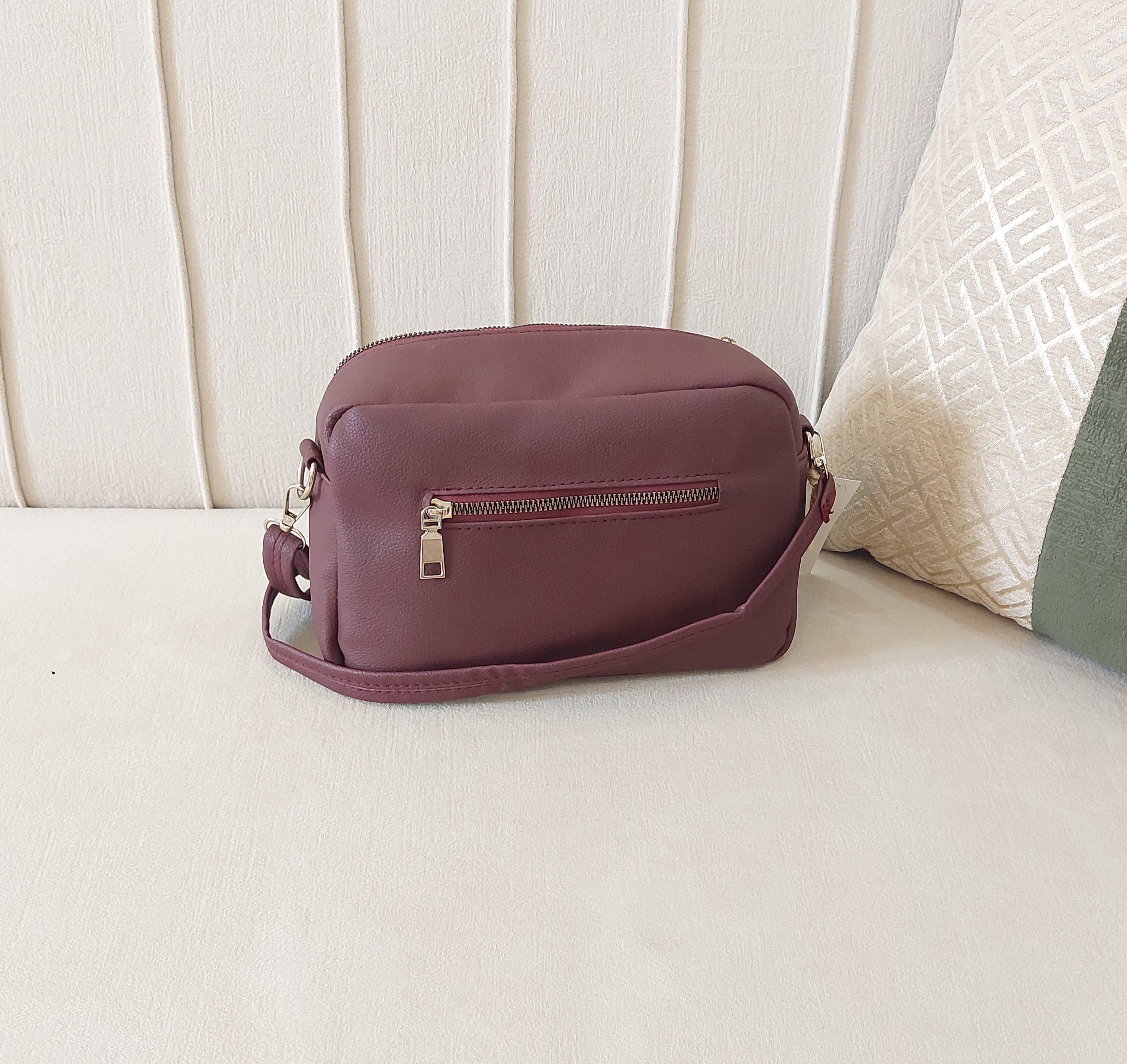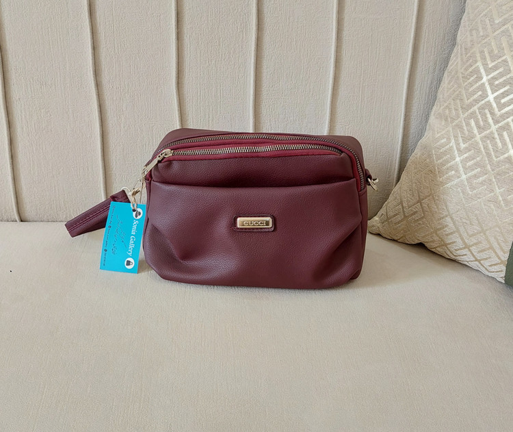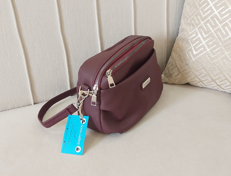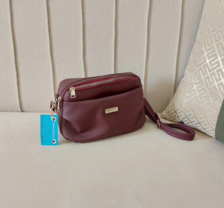 کیف زرشکی از جنس چرم مصنوعی با یراق وزیپ باکیفیت