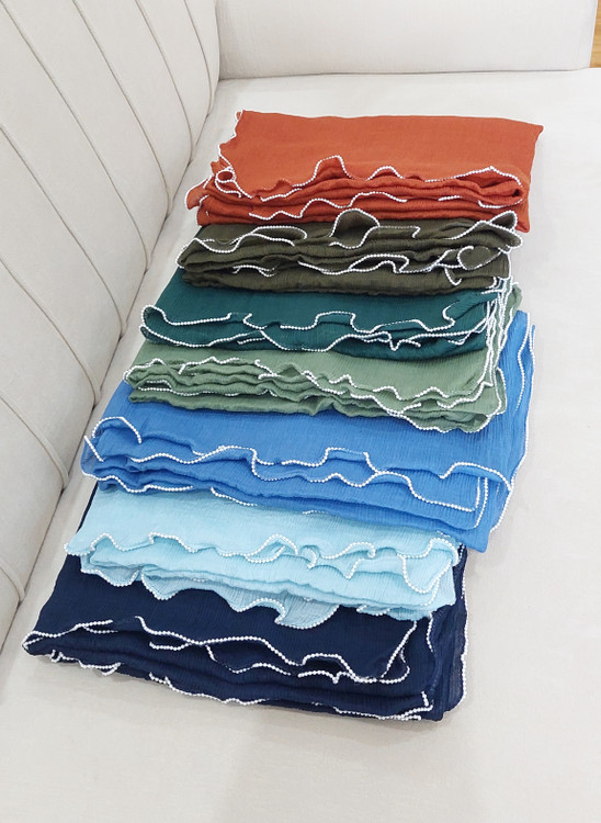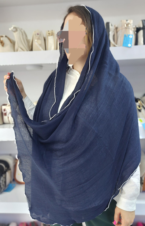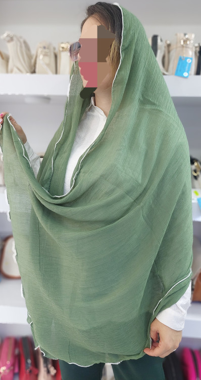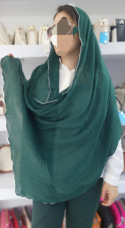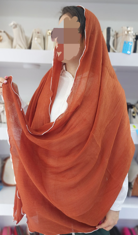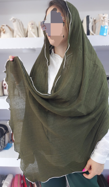شال دخترانه برشکا دور موجی مرواریدسفید وارداتی