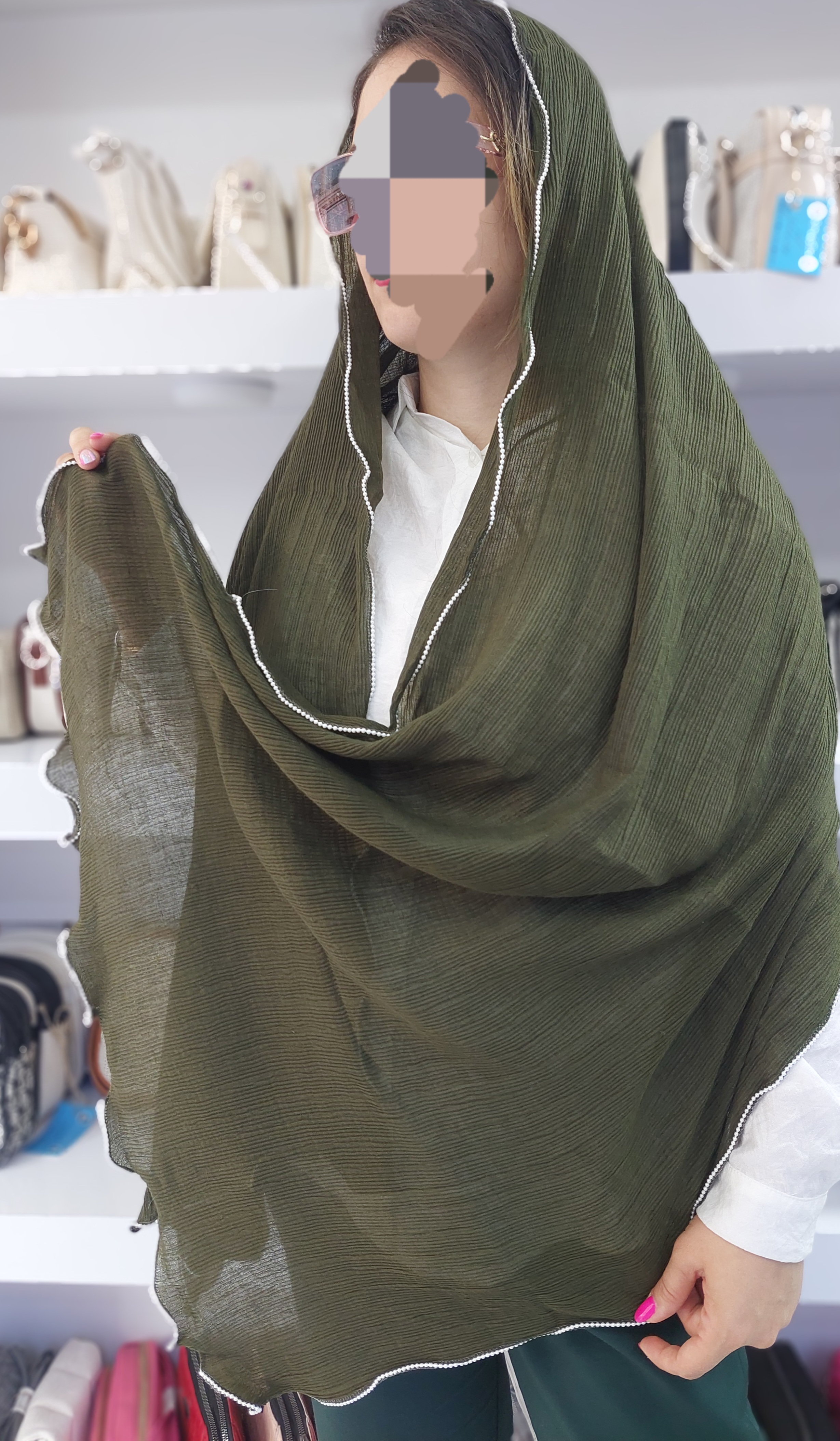 مشخصات شال: دور موجیمروارید سفید