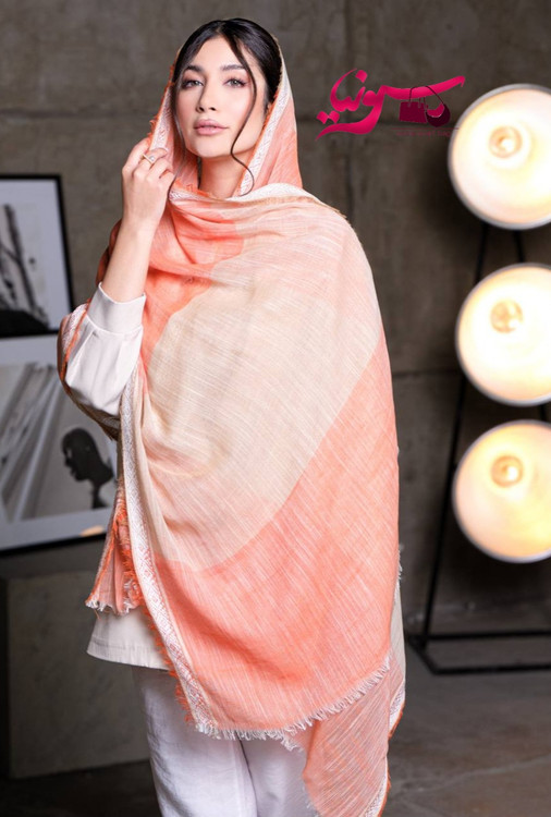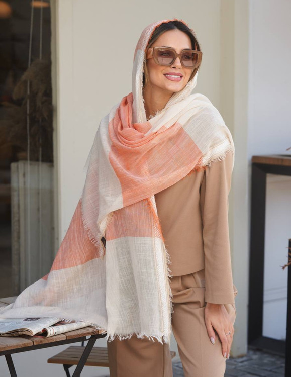 کالکشن بهار شال لینن ترکیب دو رنگ دور حاشیه سنتی و دورریش