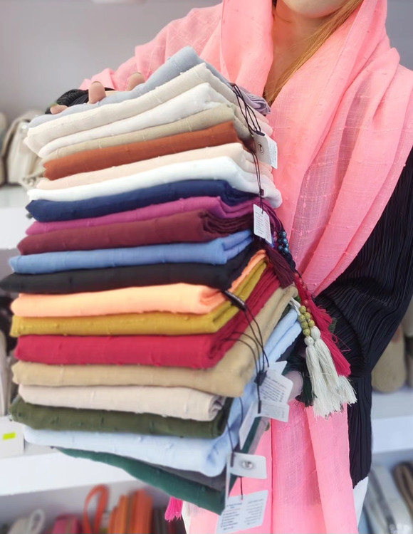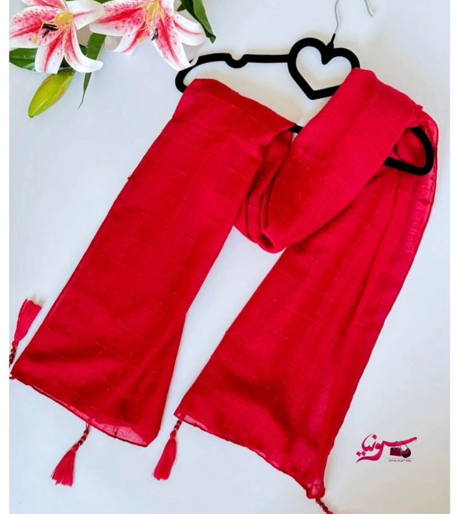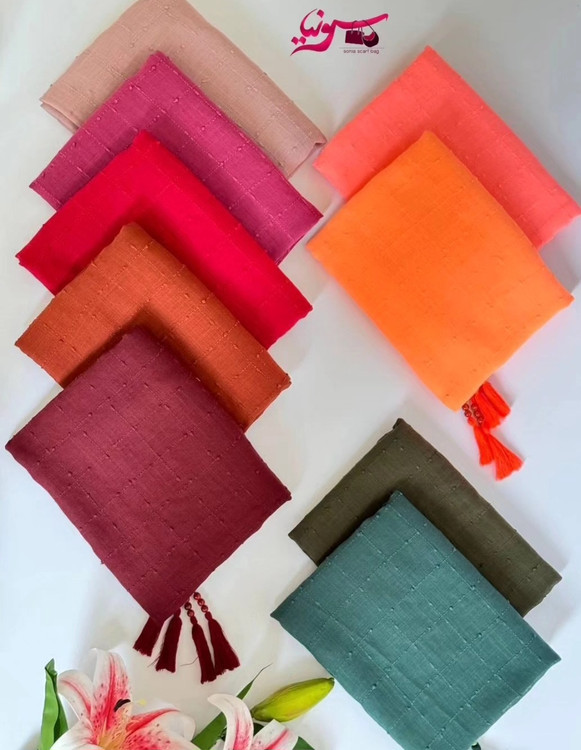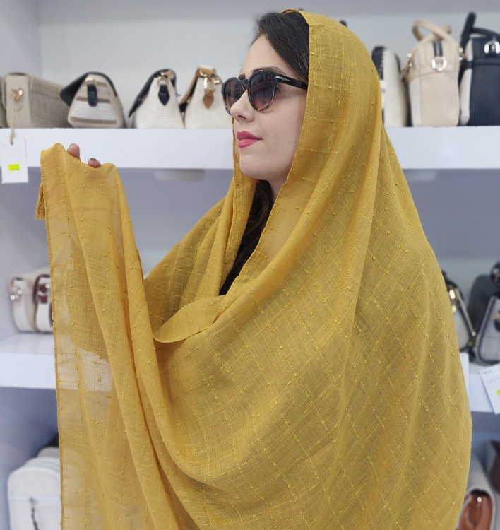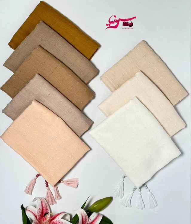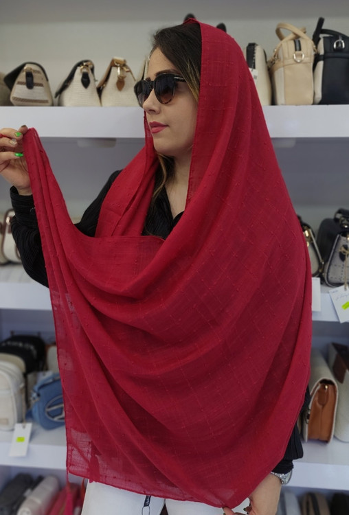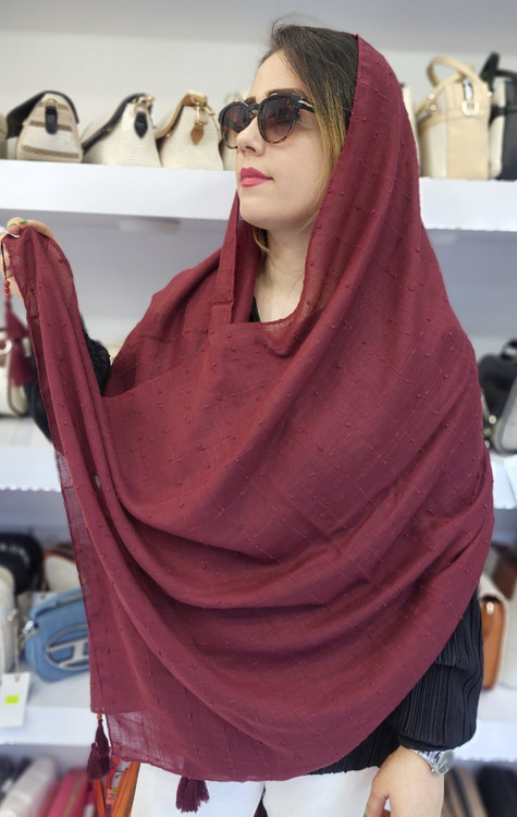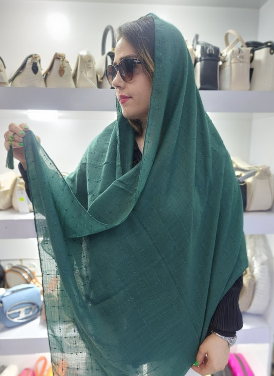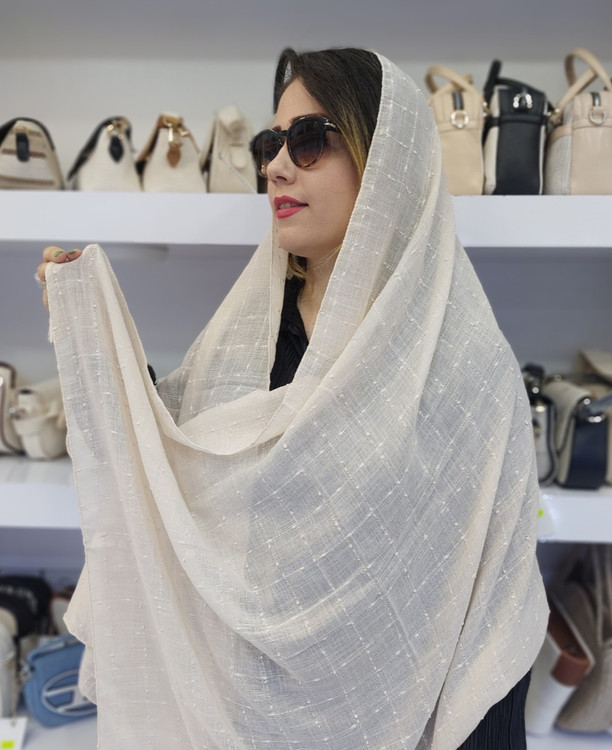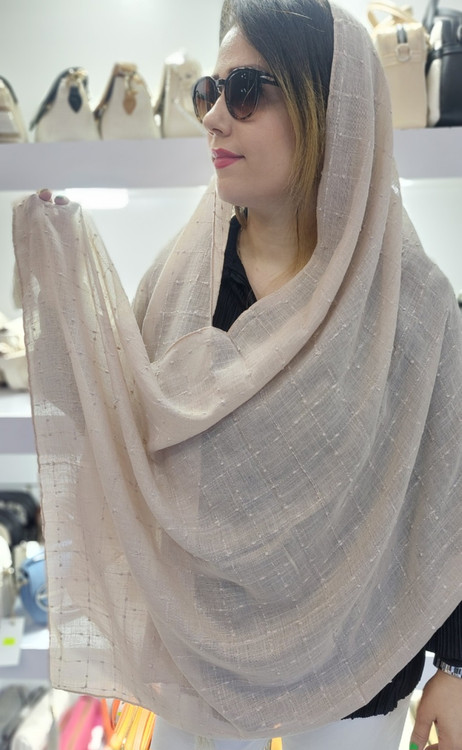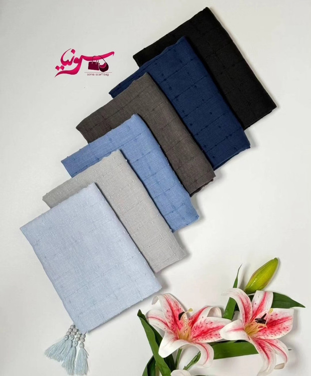 شال نخی کاملا سبک مناسب فصل بهار وتابستان ازخودش طرح برجسته با خطوط مربعی ودات دارد.