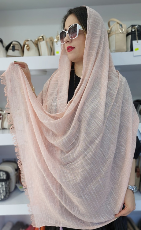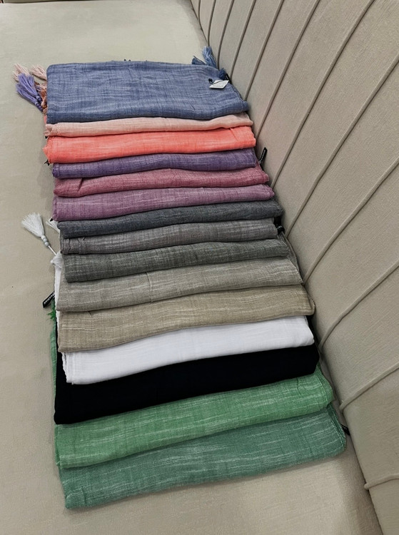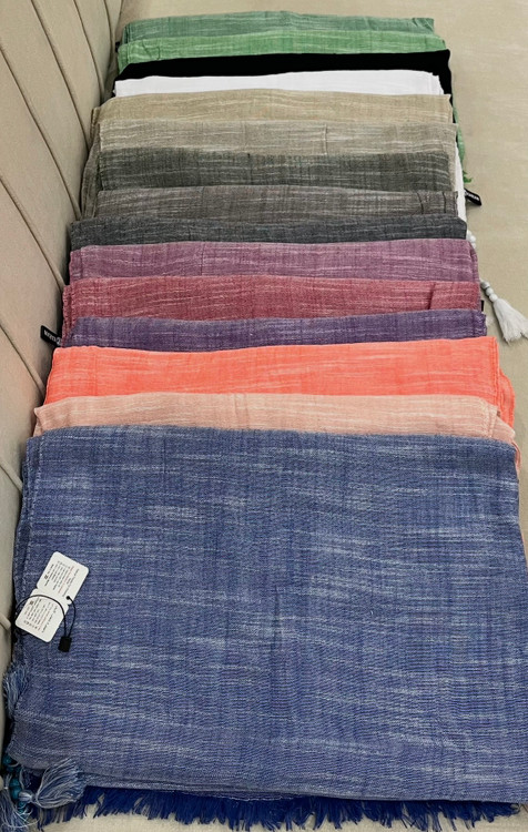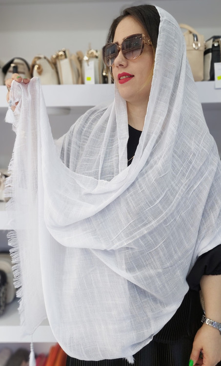 شال لینن بسیار سبک وخوشایست با رنگهایشادکه با نخهای سفید ترکیب شده و جلوه قشنگی به شال داده