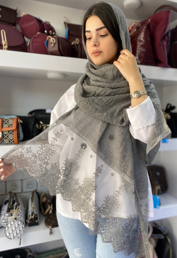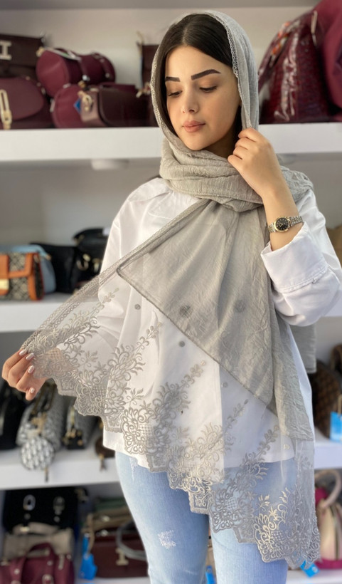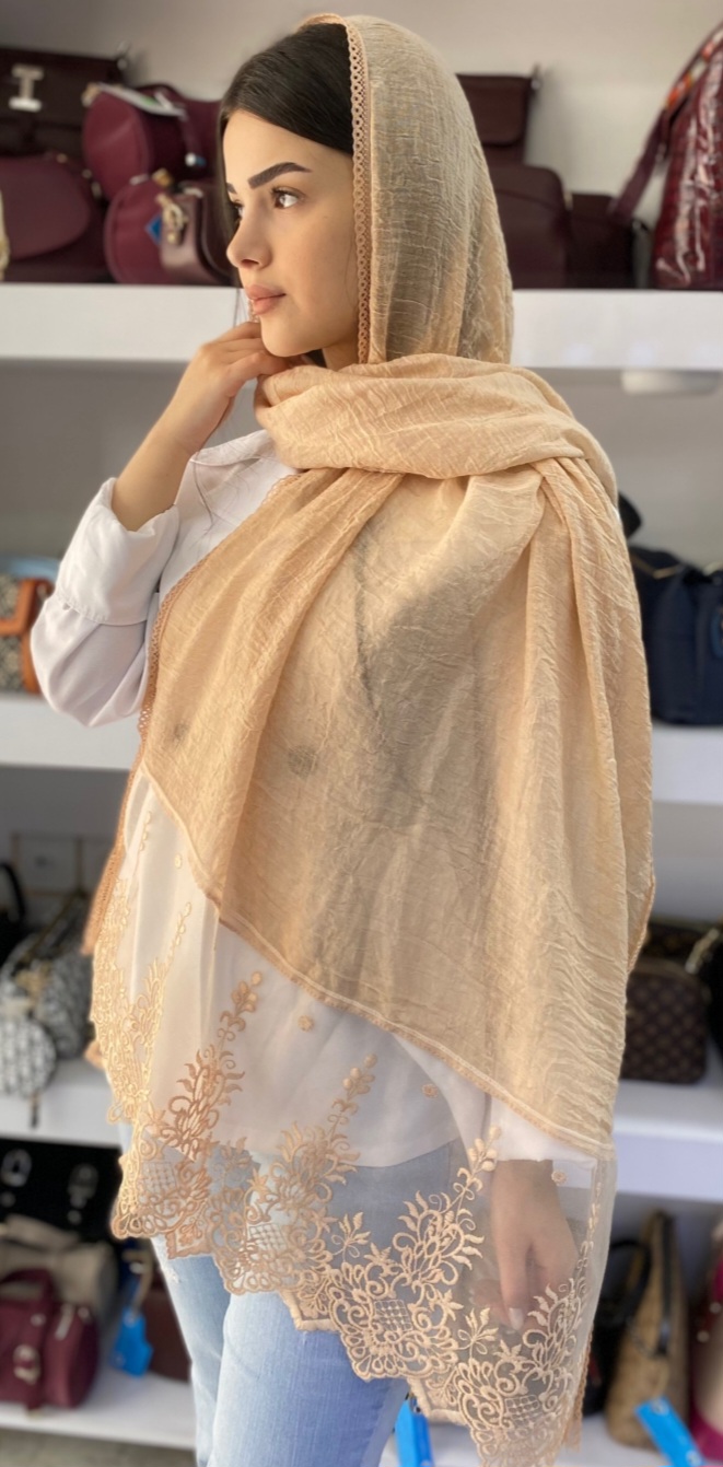 شال وارداتی بهاره دورتور و دستک یکطرف تورگلدوزی دانتل