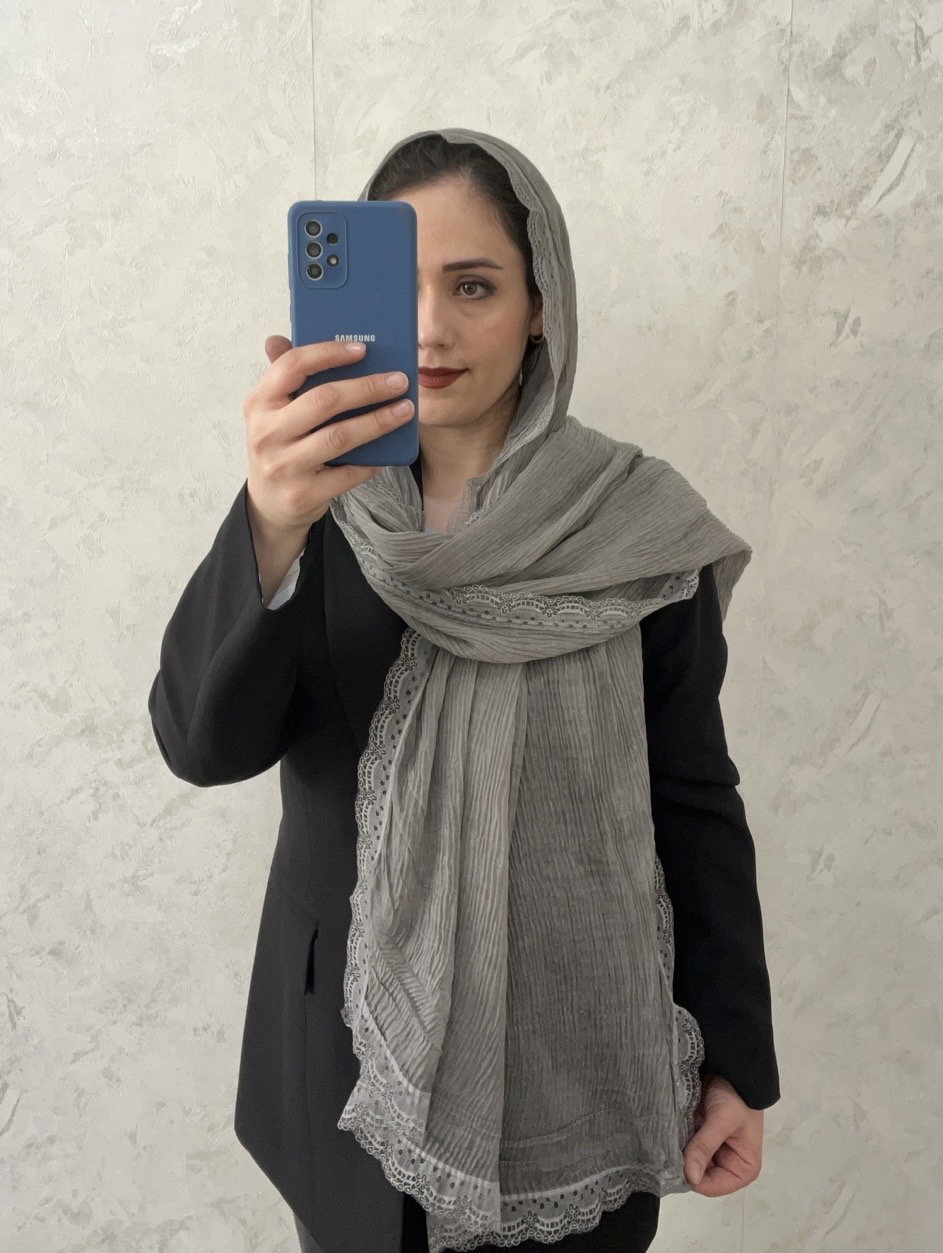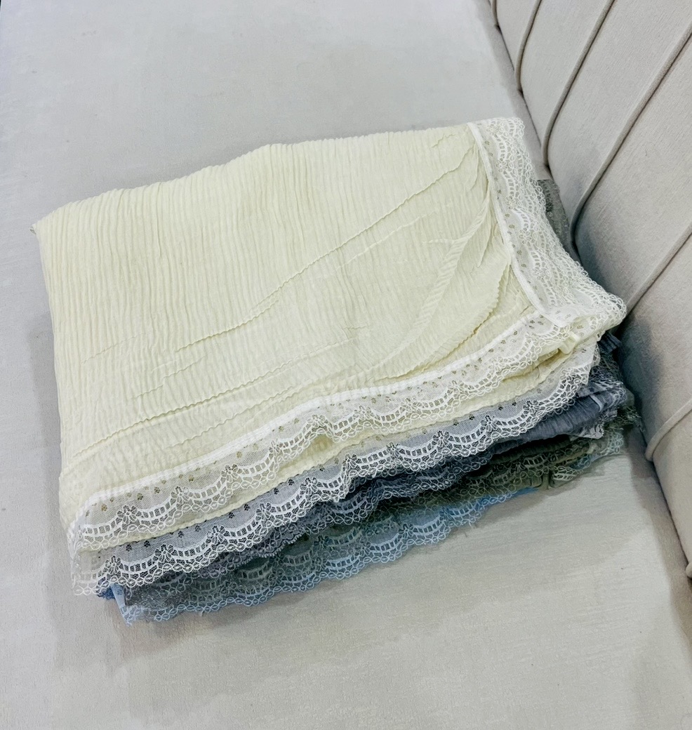 شال‌ نخی پلیسه وارداتی دور گیپوری موجی طرح گل