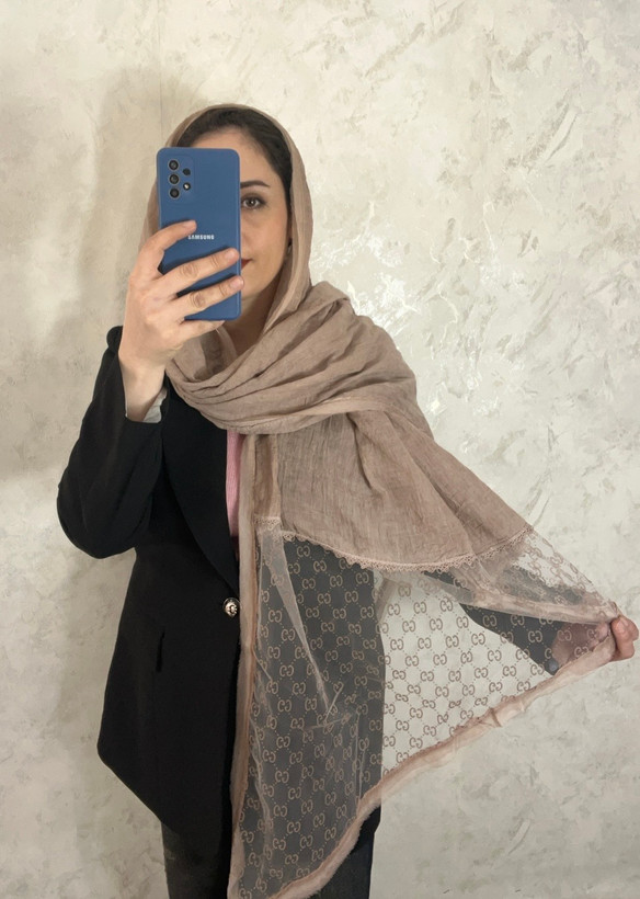 مشخصات شال: دورگان حریر دوزی ودستکماهی تور طرح گوچی