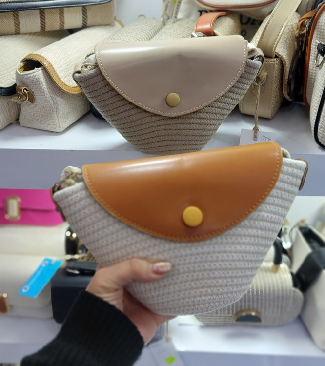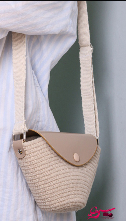 کیف کنفی قیطانی که با در دکمه ای چرمی بسته میشود.