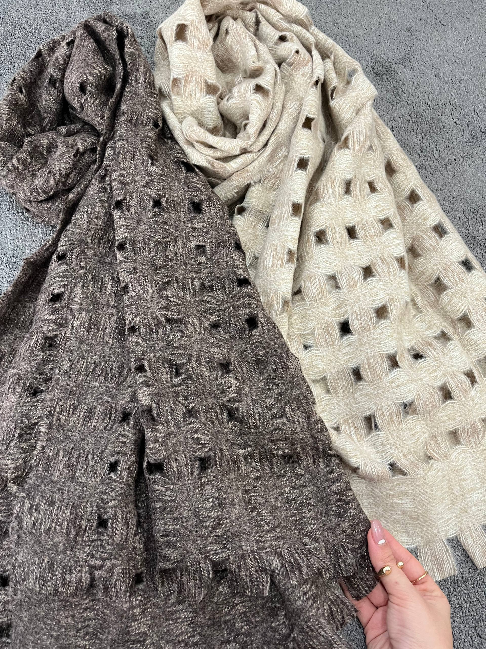 شال وارداتی طرح سوراخ مربعی جنس موهر