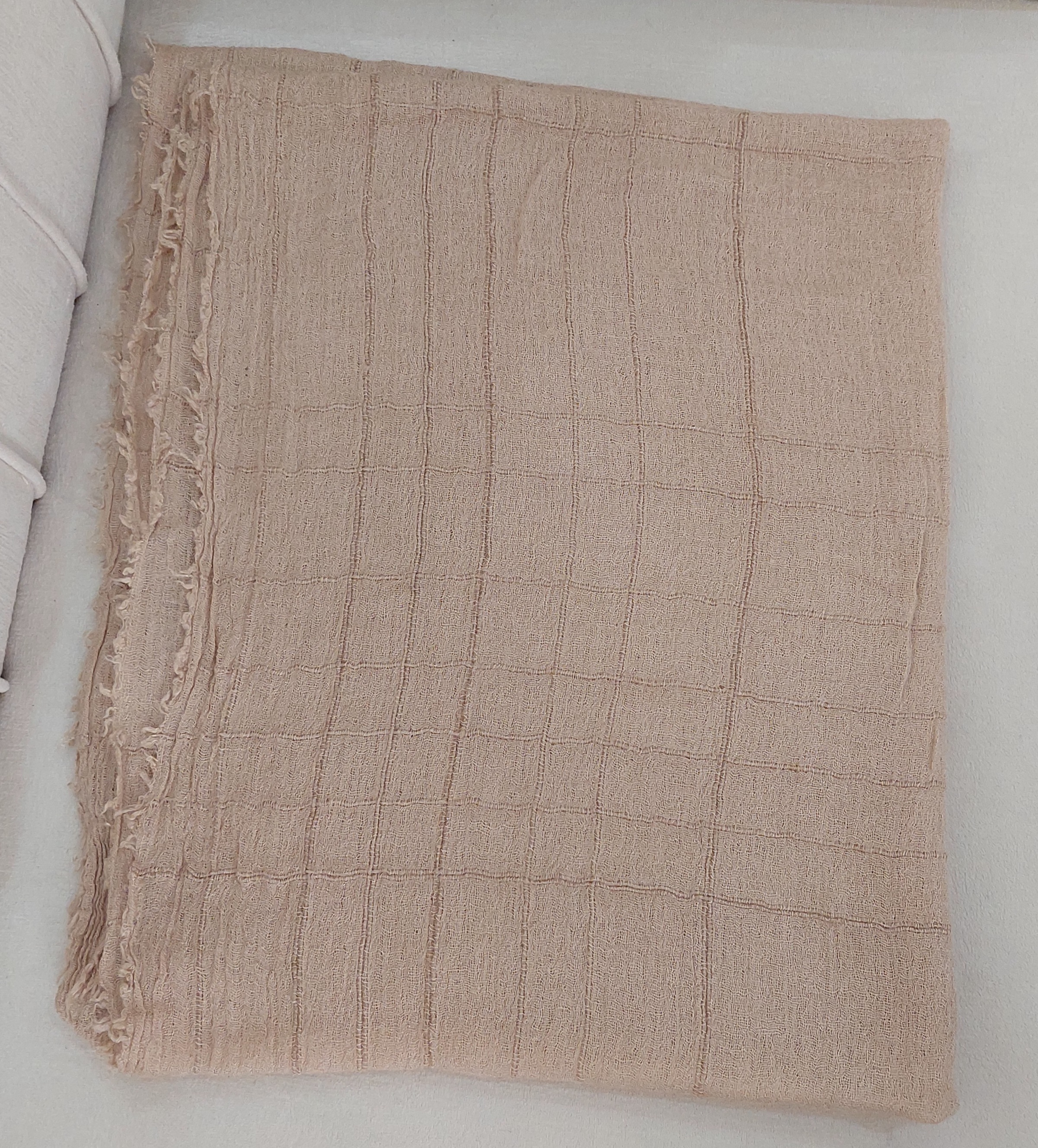 شال کنفی وارداتی دورو دورریش داخلش لمه کارشده و بسیار سبکولطیف است.