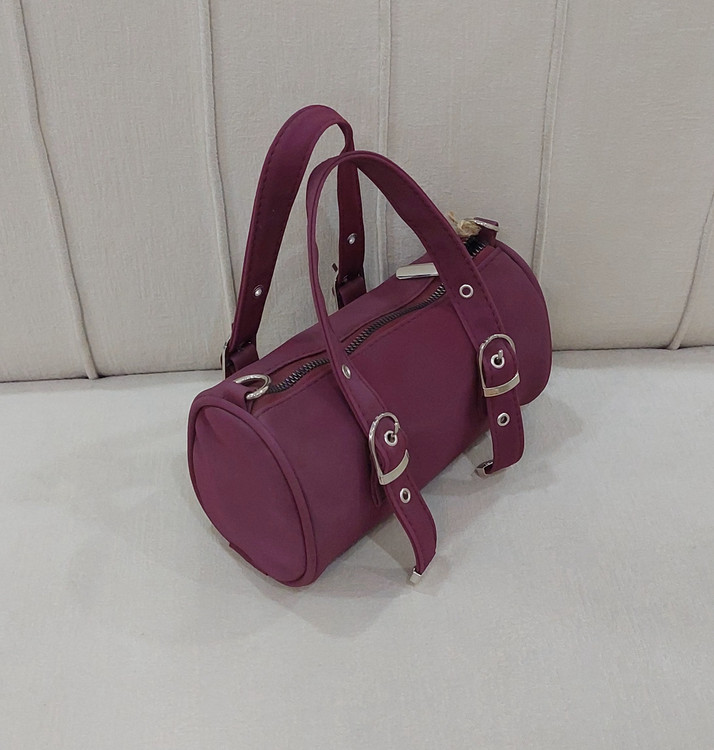 کیف دخترانه به شکل صندوقی استوانه ای از جنس نانسی که ضد آب است.