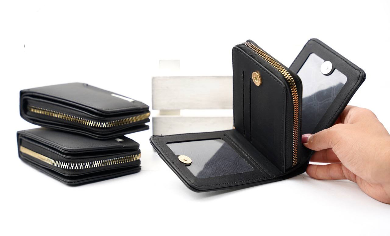 کیف پول کوچک جادار وسط زیپ دوطرف دکمه ای
